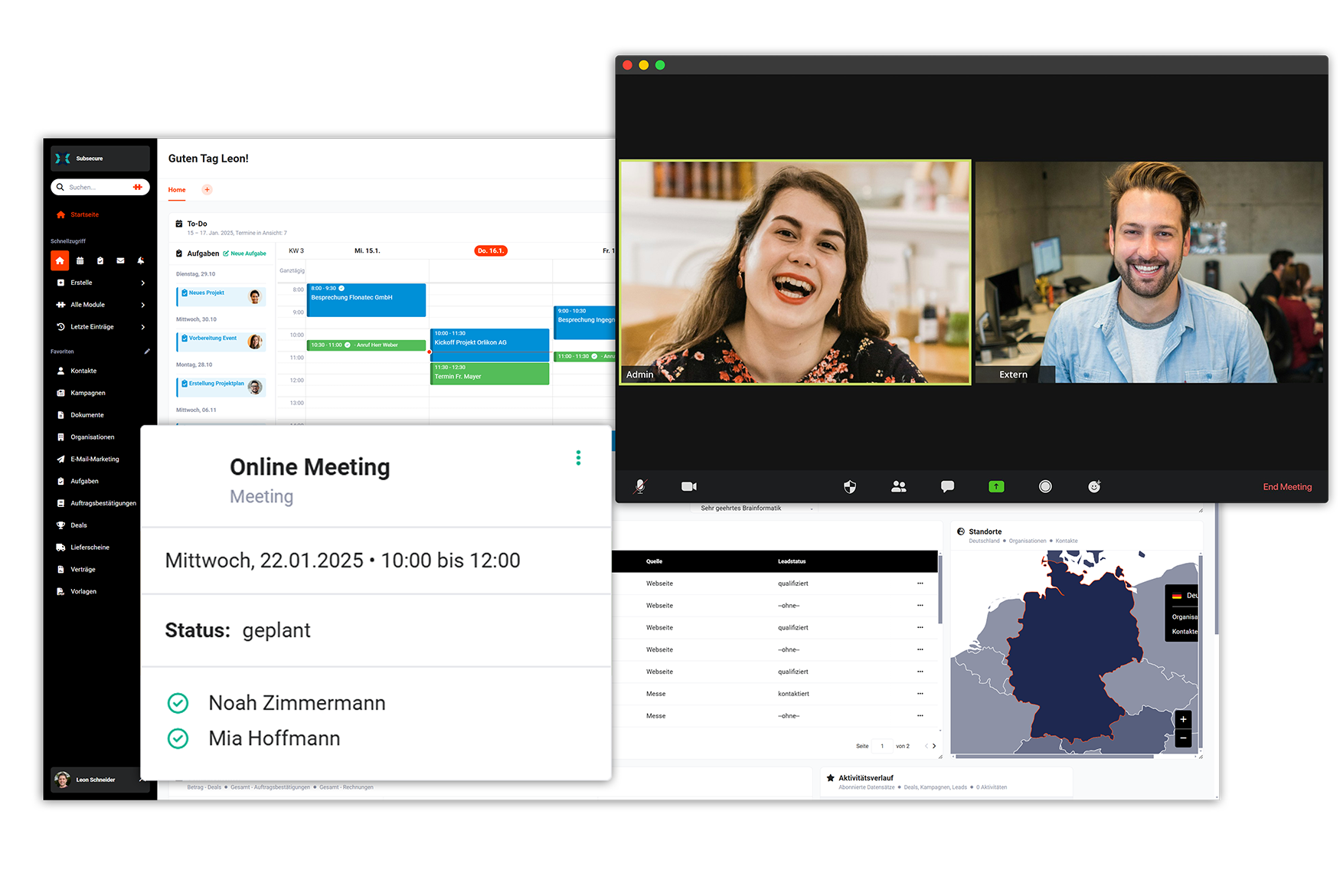 Wir hosten Ihre CRM Daten in Deutschland. Dies ermöglicht eine optimale Performance durch lokale Infrastruktur und geographische Nähe zu Rechenzentren. Geringere Latenzen und verbesserte Übertragungsgeschwindigkeiten sind entscheidend für Echtzeitkommunikation, Online-Transaktionen und automatisierte Prozesse. Eine zuverlässige Datenübertragung trägt wesentlich zur Benutzerfreundlichkeit der Oberfläche und zur Skalierbarkeit für wachsende Anforderungen bei. Dies ist unerlässlich für einen effektiven und kundenorientierten CRM-Workflow der auch Sie sicher begeistern wird.